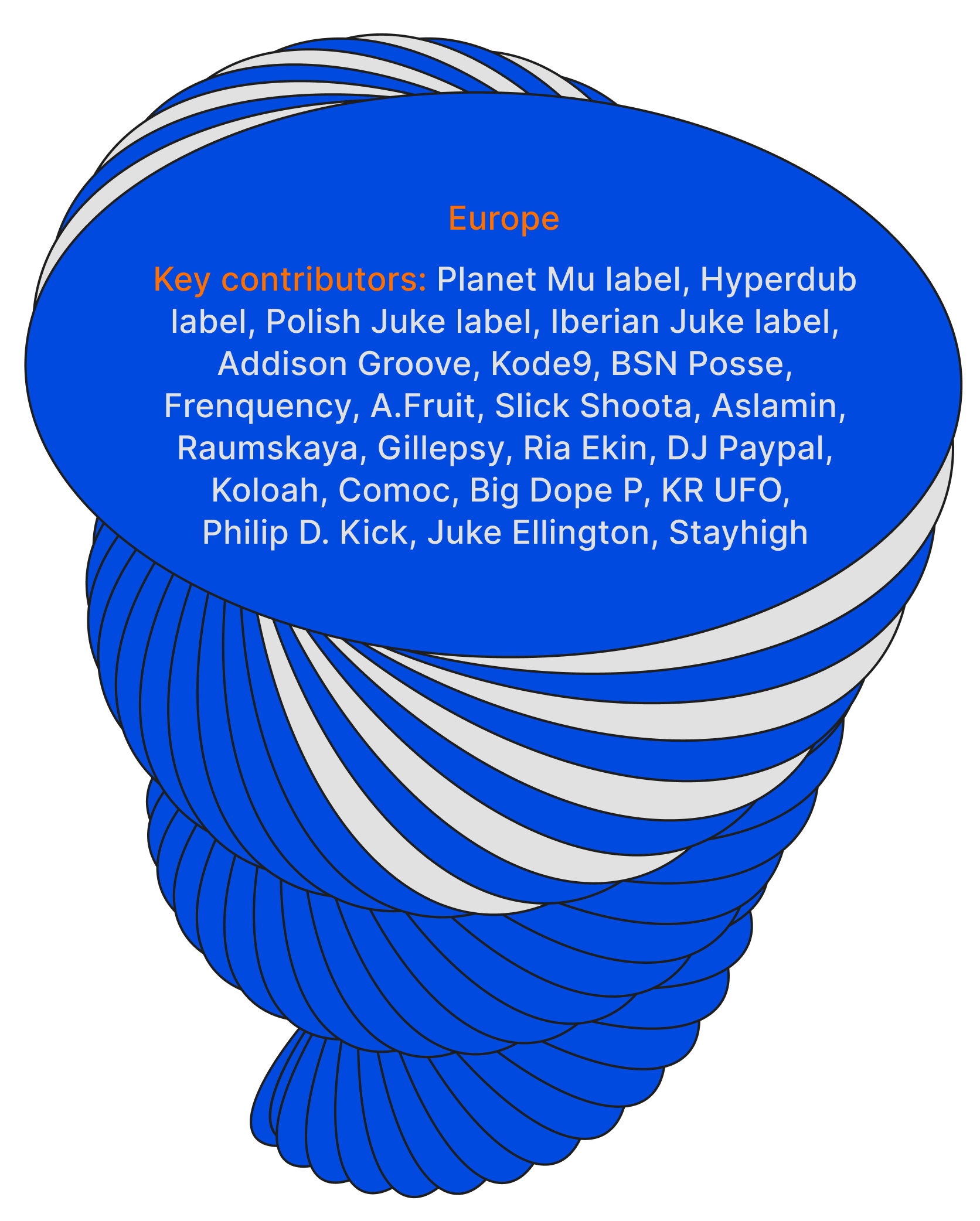 Explaining the difference between juke and footwork is kind of like explaining the difference between jungle and drum and bass. People juke to footwork tracks and people footwork to juke tracks.