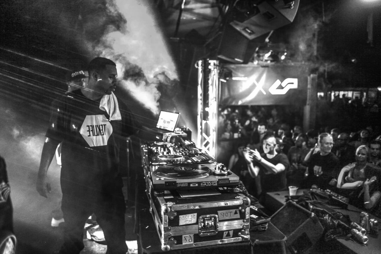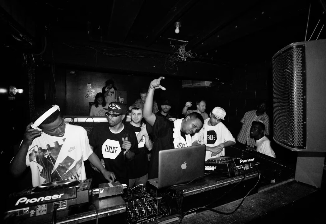 to offbeat, syncopated drum machine patterns and pumping sub-bass lines.